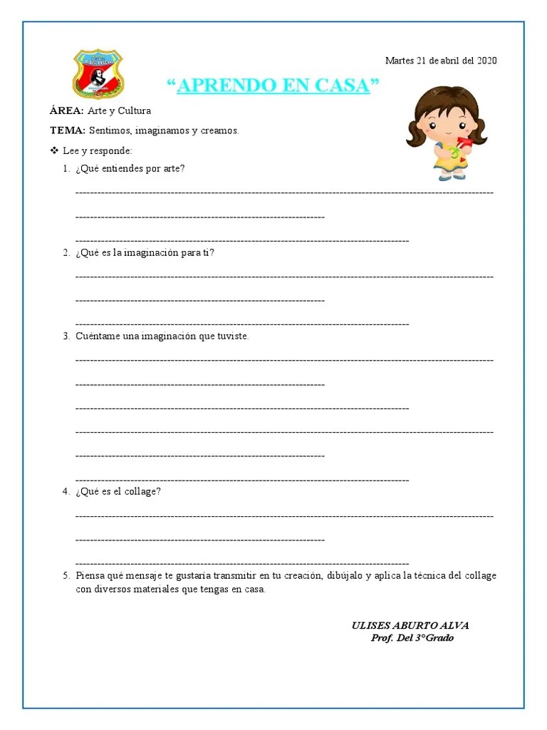 Escoje una obra teatral … Queremos dar la bienvenida al área de arte y cultura 2021 a las estudiantes de nuestra i.e. Actividad de trabajo para el nivel primaria 21 semana agosto aprendo en casa 3ro, 4to y 5to secundaria 21 … Descarga docx publicidad publicidad nuevas preguntas de arte. Lunes, 24 de agosto de 2020.. Queremos dar la bienvenida al área de arte y cultura 2021 a las estudiantes de nuestra i.e.